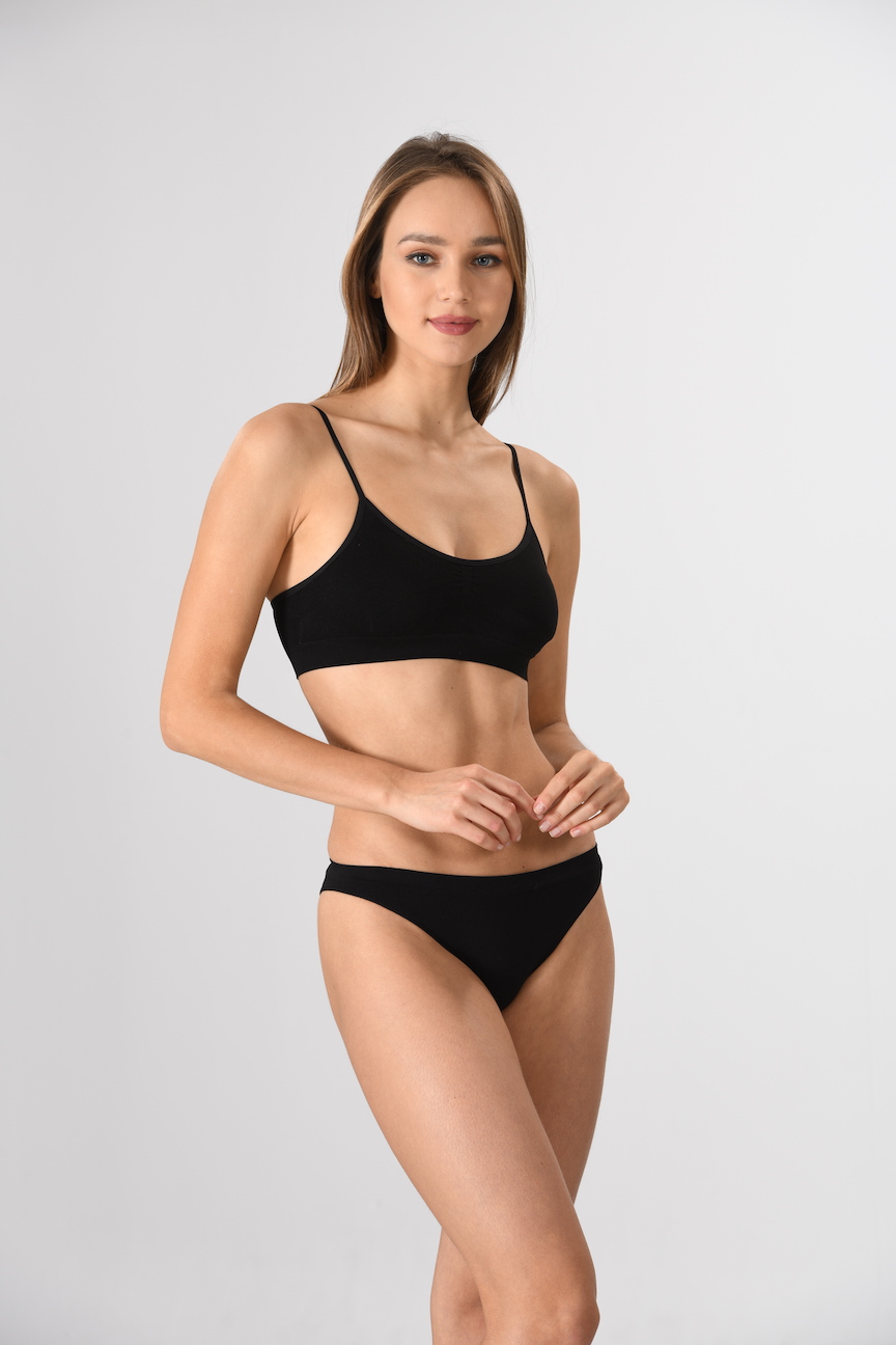 Damen-Bustier mit Pads und schmalen Trägern aus der BASIC - COLLECTION von Miss Fit schmiegt sich wie eine zweite Haut an - selbst unter eng anliegender Kleidung bleibt es unsichtbar. Dabei sorgen die Pads für perfekten Halt und können bei Bedarf herausgenommen werden. Das Bustier zeichnet sich durch einen besonders hohen Tragekomfort aus. Es ist ohne Bügel und ist aus feinem, hochelastischem Mikrofaser gefertigt. Außerdem ist es mit einem breiten, bequemen Bund als Abschluss versehen. Die nahtlose Verarbeitung macht es zudem besonders trageangenehm.